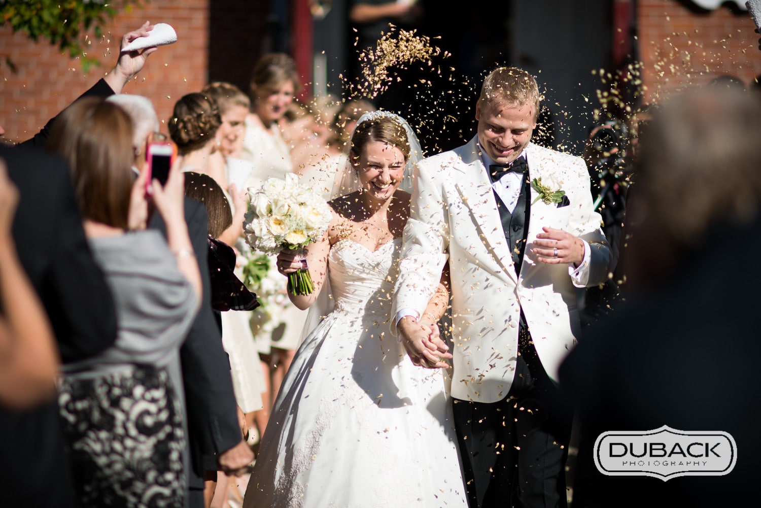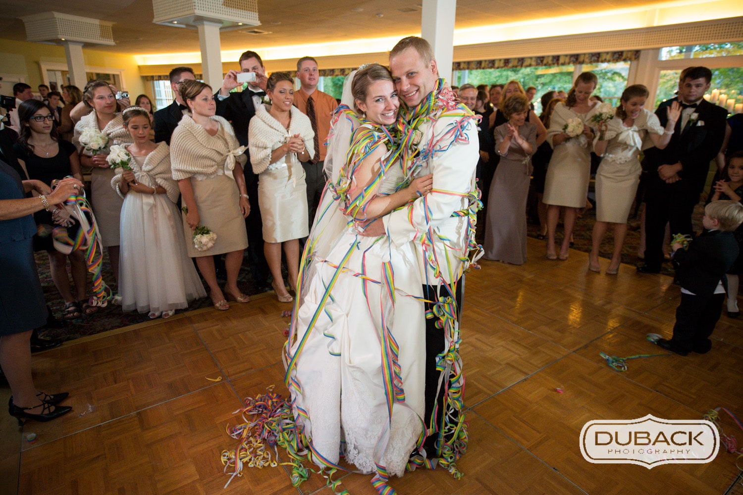 These are some of my favorite photos from Brittany & Steve’s wedding at the Basin Harbor Club this weekend. Despite it being a mid-October wedding, which can sometimes present colder weather, it was a beautiful day. Brittany and Steve did an amazing job planning. From the lavender outside of the church, to the escort cards to the outside lighting, they really made it their own. My favorite part, however, was a surprise to both of them. Their family and friends wrapped them in streamers during their first dance. It was an amazing moment.